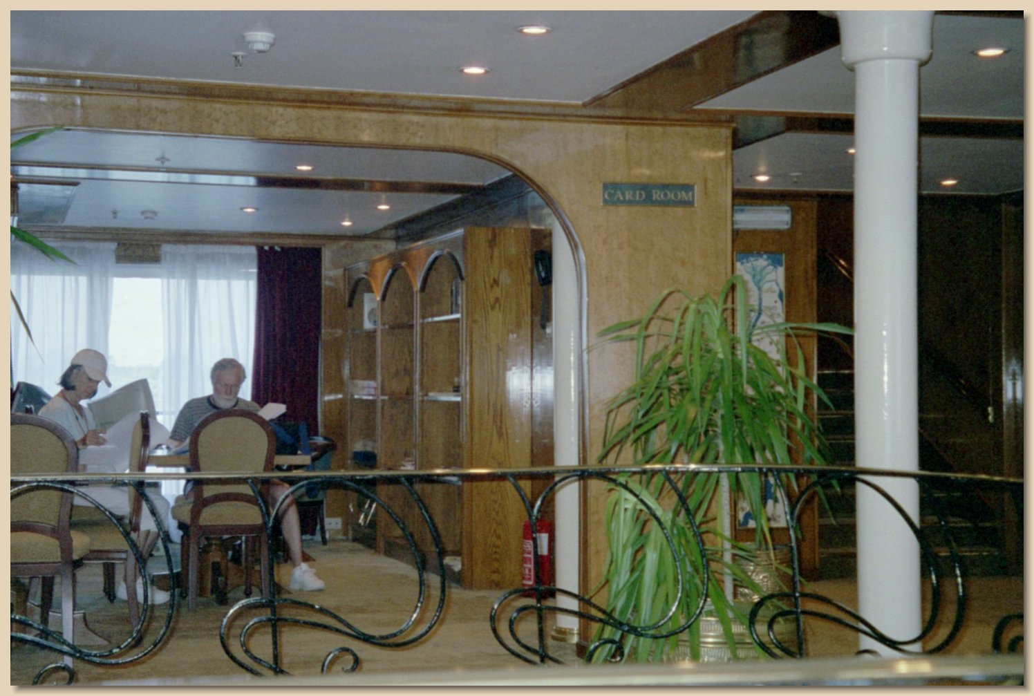 The boat downloaded and printed out a laser-printed copy of U.S.A. Today and the Herald Tribune, among one or two others, every day. Televisions in each cabin received several stations, including CNN International. In addition, there was a special movie shown each evening on the boat’s movie channel. The daily schedule of tours, meals and events was on yet another channel. There were two computers with Internet access, but they were rather expensive and the service was very slow while the boat was docked at Aswan. It was supposed to be faster in Luxor. Service at an Internet cafe in towns such as Luxor ranged from $2.00 to $4.00 an hour. (An Internet cafe in Cairo a few minutes walk from the Marriott cost about $5.00 an hour.) A banker came to the boat twice and exchanged U.S. dollars or traveler’s checks for Egyptian pounds or traveler’s checks for dollars. There were Automatic Teller Machines in every town outside most banks or outside tourist locations. Of course, they dispensed only Egyptian pounds.