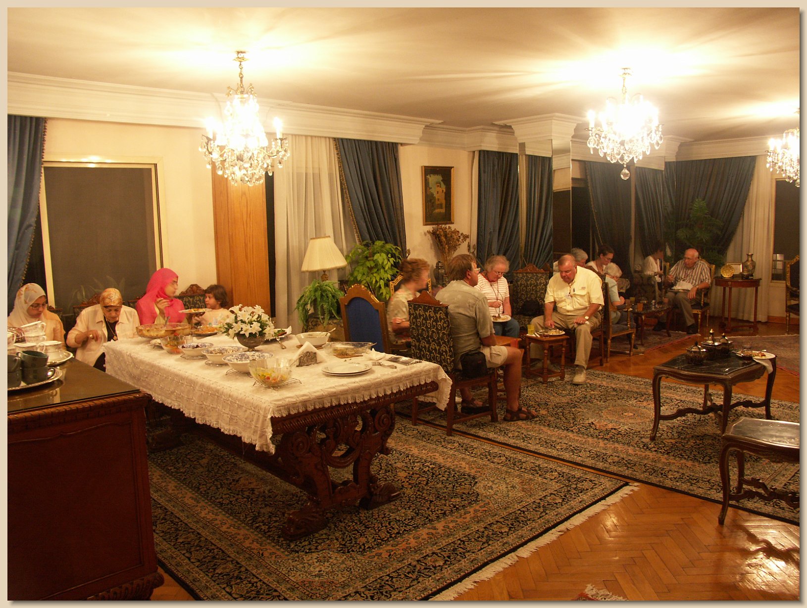 During one of the nights in Cairo, an American woman who lived with her Egyptian husband in Cairo discussed her experiences living there. She originally had been from Chicago and it had been her idea to move to Egypt. On yet another night, the Grand Circle tourists had dinner at an Egyptian family’s home, where they were encouraged to ask about Egyptian life. So, all-in-all, Grandma Bert and Grandpa Roy learned a lot about old and new Egypt.